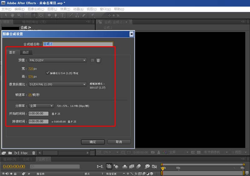 1、首先打開AE,按CTRL+N新建合成(設置按實際需要設置),如下圖: