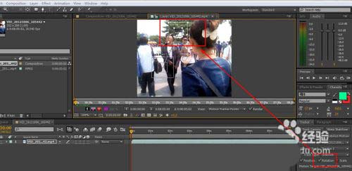4、選擇穩定追蹤。到了關鍵的步驟了,這里選擇穩定追蹤之后在合成的窗口中就會出現兩個方框,一個大的一個小的。