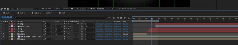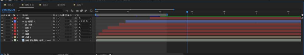 4、將文字層對準音頻波形逐層添加對應到音頻波形波動條位置。按照這個方法就可以制作出一個有節奏感的效果出來了。還有疑問盡管問我吧