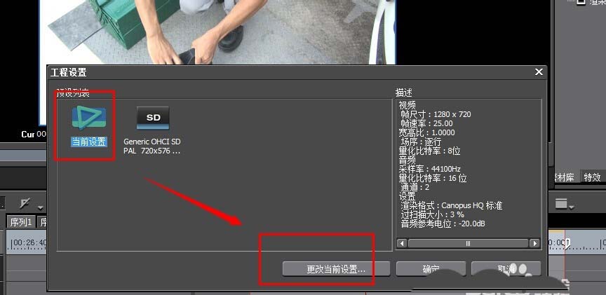 2、進入“工程設置”的預設列表,然后點擊“更改當前設置”