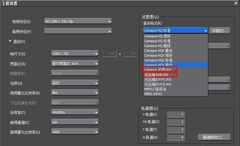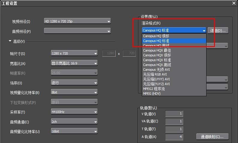 3、在詳細的參數設置頁面的右半部分找到“渲染格式”,一般EDIUS不能輸出的時候,就是這個渲染格式在作怪。