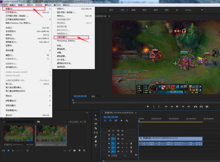 4、因為新版Pr2017與之前版本不同,不能通過右鍵的新建字幕建立字幕。只能通過:文件——新建——舊版標(biāo)題,來添加字幕。