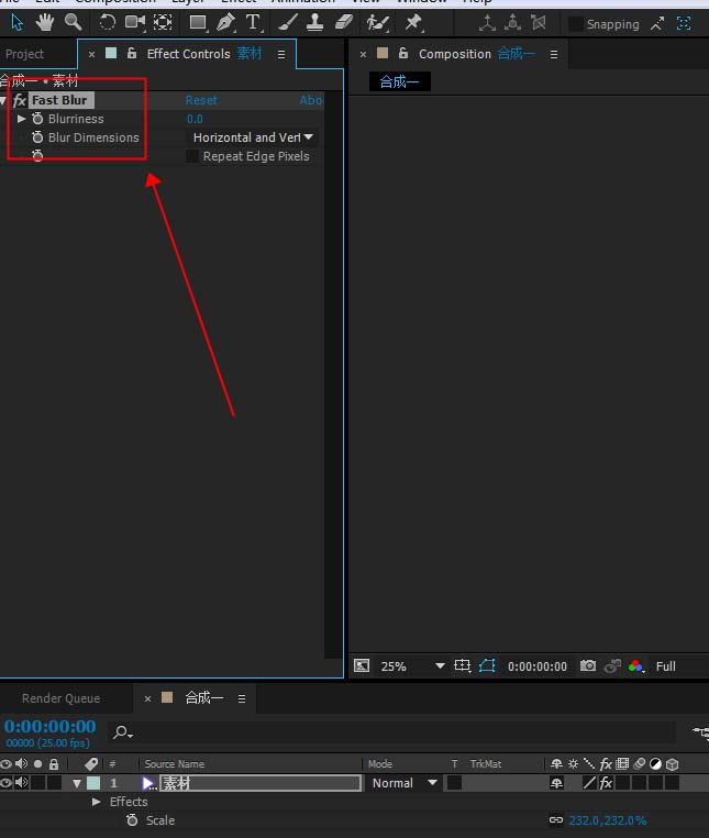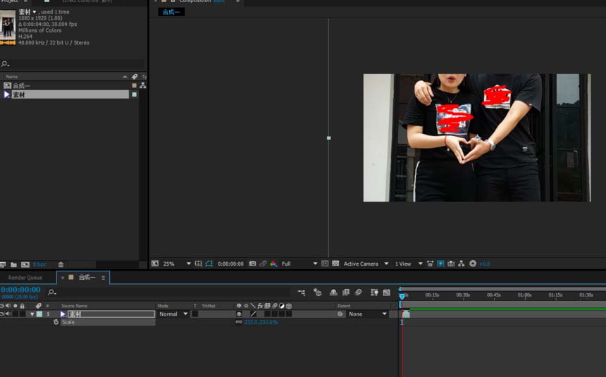 2、將手機視頻素材拖入時間線,并將視頻大小縮放至整個合成大小
