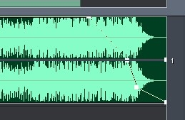 4、在你選定的聲音開始減弱的地方打一個點,此處的音量仍為100%,選定聲音徹底消失的地方,將此處的點拖動到最下方,此處音量為0%,圖中我拖到了3%。這是最直接的方法,聲音會自動從你打點的地方開始淡出。如果你要做出其他效果,可以多打幾個點,然后調(diào)節(jié)聲音大小。