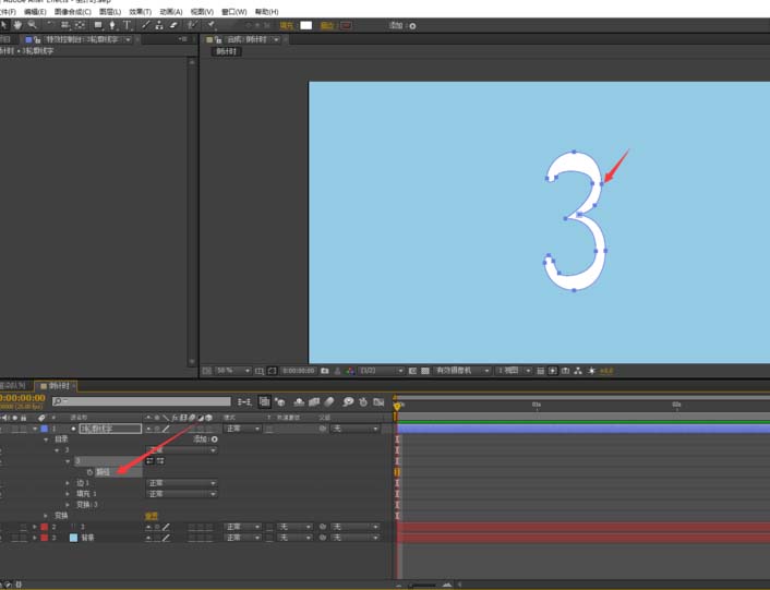 5、然后我們找到路徑,然后點擊路徑,就可以看到輸入的數(shù)字上有很多的點,這些點的作用就是我們做動畫的關(guān)鍵所在了,所以為了簡單一點的去完成動畫,所以盡量去選擇,不那么復(fù)雜的字形,然后呢,我們就可以對,這個數(shù)字的點進(jìn)行一些修改和刪除,但是修改之后,還是要看的出來這是什么數(shù)字!