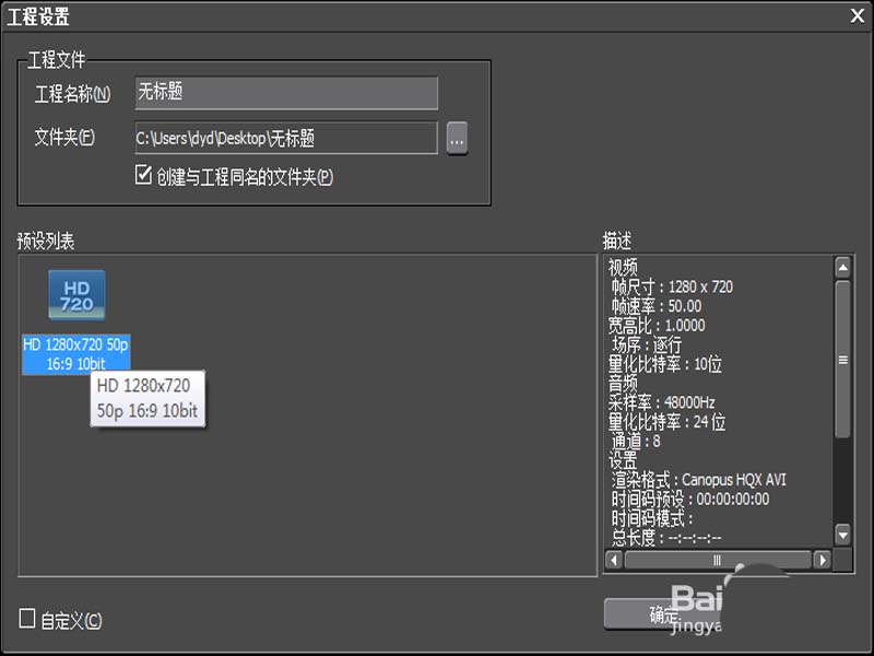 1、首先雙擊桌面上edius軟件,啟動該應用程序,點擊新建工程按鈕,新建一個hd720 工程。