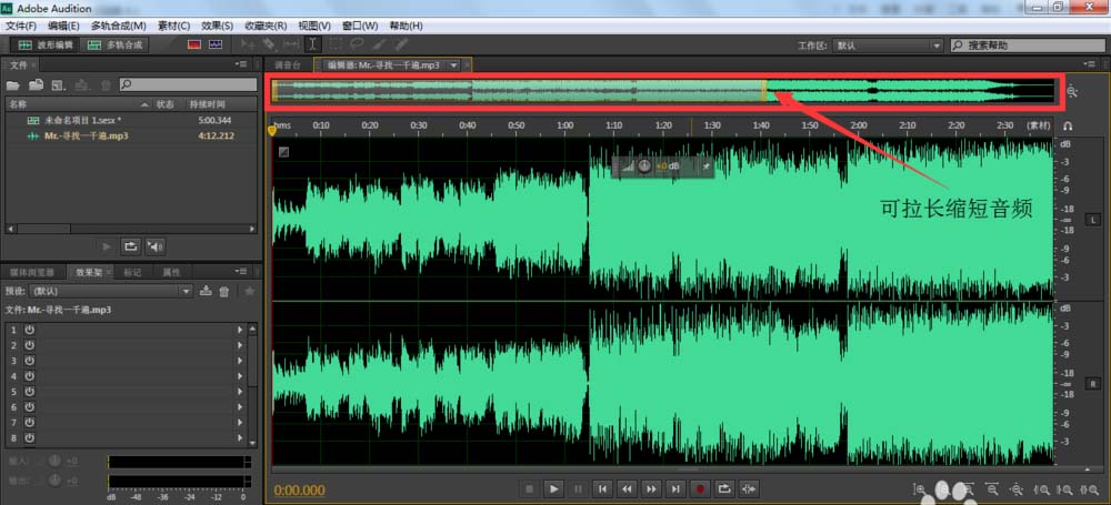 5、錄好音之后,可以雙擊進入波形編輯進行試聽。音頻還可以拉長,方便找出錄音過程中出現的問題