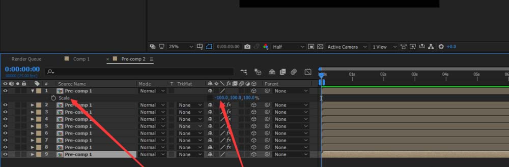 8、將第一個合成(即z軸最里邊的合成)沿x軸翻轉。