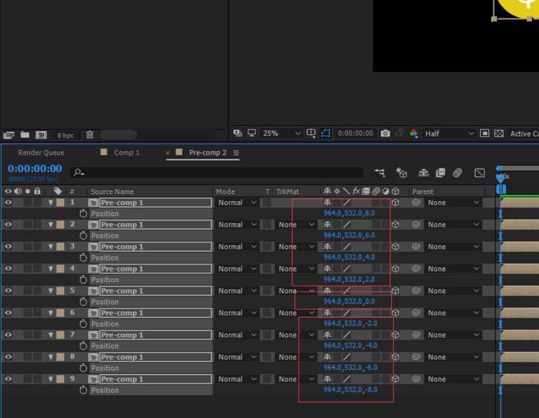 5、復制八個預合成出來。(復制的數量可以多可以少,但是合成的總數必須是但數個)