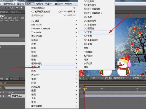 1、打開After Effects cs4 軟件,執行 “文件—導入—文件”命令,導入一張圣誕節圖片。如下圖所示:
