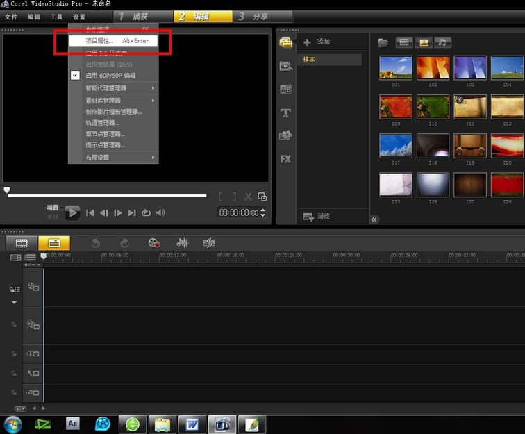 1、在打開的會聲會影X5軟件界面上,找到上方工具欄的“設置”——“啟用60P/50P編輯”