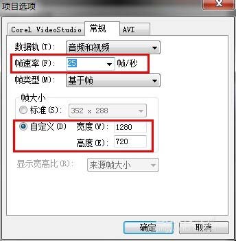 6、正確輸入我們需要的視頻尺寸,然后調整我們需要的幀速率。確定即可完成。