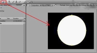 6、使用工具架中的圓形遮罩工具,在合成窗口中繪制出如圖6所示的正圓形遮罩(小技巧:需要畫正圓形,即按住Shift的同時,繪制出圓形便為正圓形)。