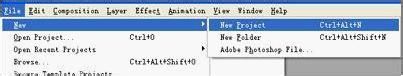 1、打開After Effects軟件,執行File—New—New Project(新建立工程快捷鍵為Ctrl+Alt+N)。
