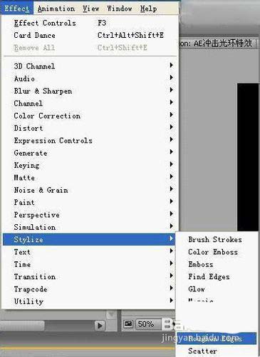 9、選擇黑色固態層,執行Effect—Stylize—Roughen Edges,為該層添加粗糙邊特效。