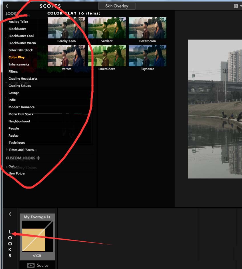 5、我們選擇左下角looks就可以看到上面有好多預制的效果了,選擇一個自己喜歡的色調,