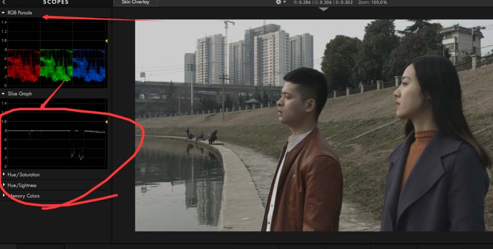 4、打開之后首先看到是色彩方面,類似于達芬奇里面的示波器,
