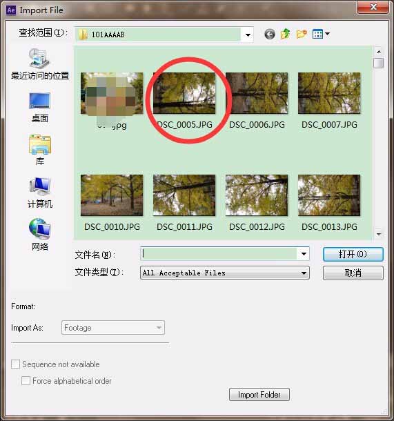 3、接著我們?cè)陧?xiàng)目面板那里雙擊插入一張圖片,并把圖片拉到編輯區(qū)里面