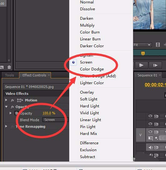 6、接著我們在樹木素材的特效選項里面選擇疊加方式,在【blonde mode】這個選項里面選擇【screen】