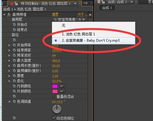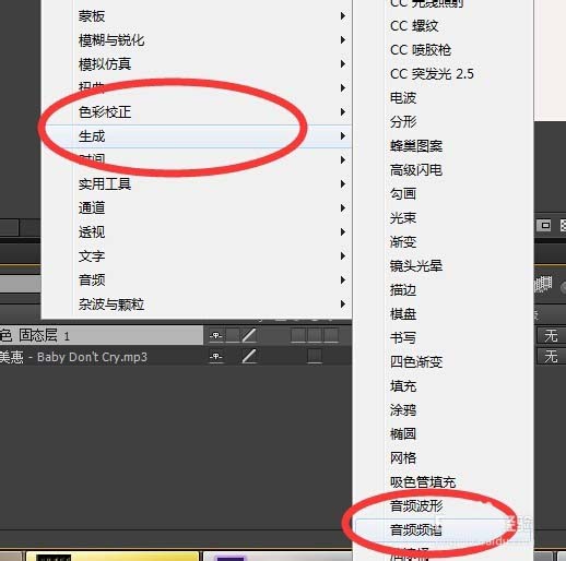4、接著我們點擊效果-生成-音頻頻譜,把音頻層選為我們的音樂