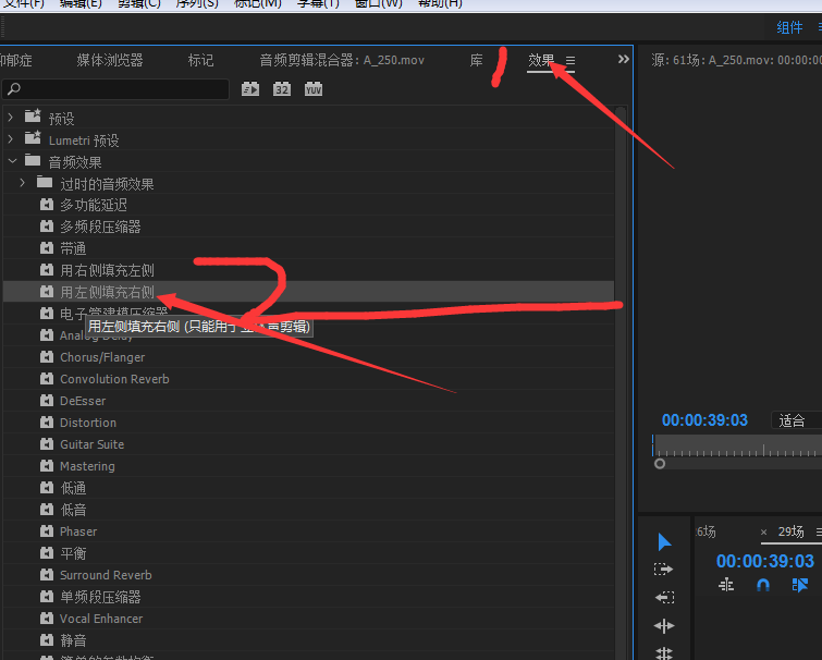5、我們選擇效果,在選擇用左側(cè)填充右側(cè),反之一樣