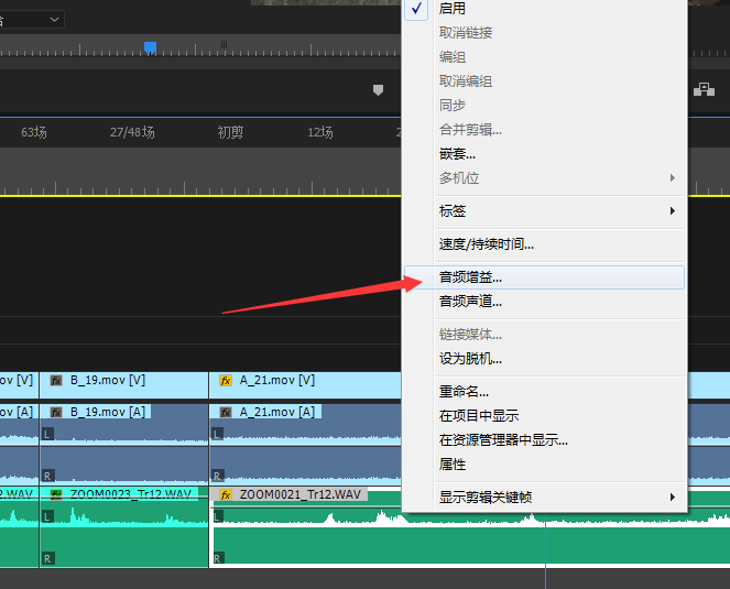 2、第二個(gè)選擇音頻,右擊,選擇音頻增益