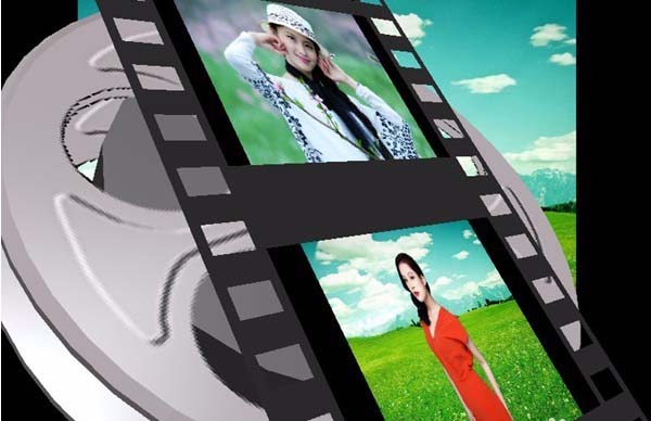 7、第二種膠卷效果操作方法和上面類似,照片是從上斜著向下。覺得滿意了就在 會聲會影界面上面點(diǎn)擊”共享“,渲染輸出。