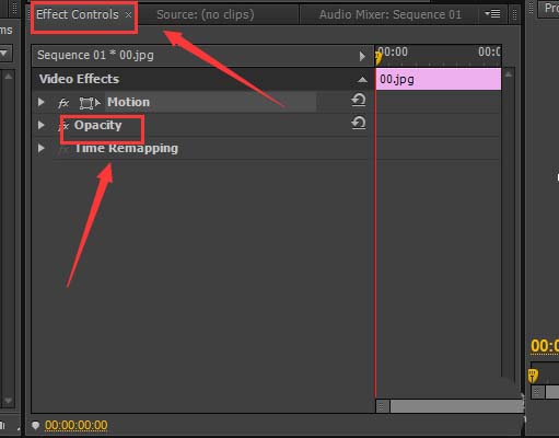 4、選擇圖片找到effect controls面板,并在其內(nèi)找到opacity選項,如圖所示: