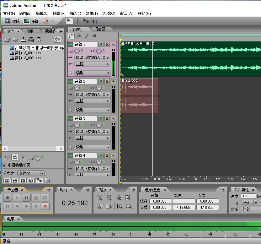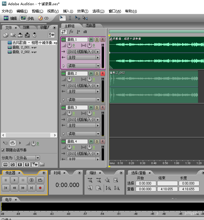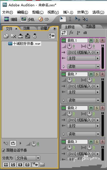 1、點選視圖中的多軌試圖模式。點擊圖中的文件導入自己需要的音樂伴奏!