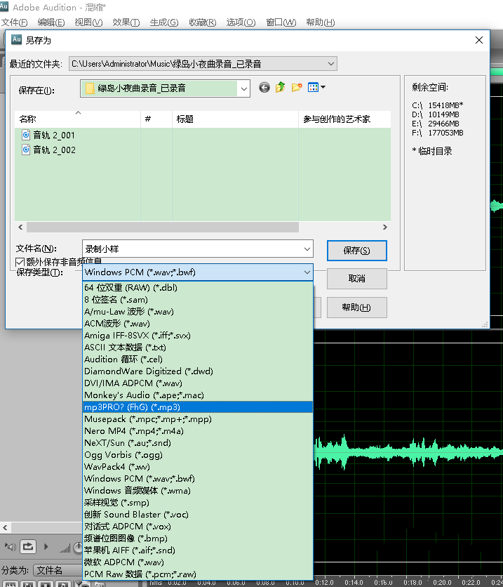 10、在編輯模式下點另存為,寫好自己的文件名。并選擇MP3格式,然后保存。會出現彈框。點確定即可。