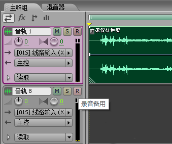 5、點亮剛才已拖入音樂第一音軌的下一排,即第二音軌上的錄音備用按鈕。即紅色的R.會彈出對話框,點確定。
