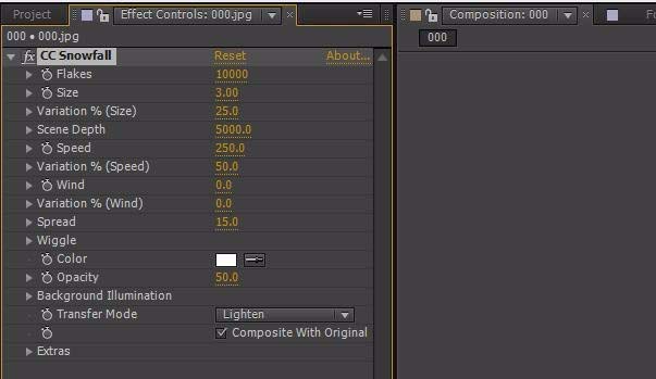 7、在CC snowfall編輯界面里調節參數如圖所示: