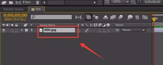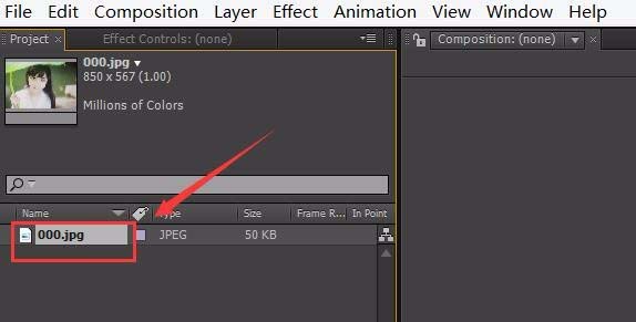 4、選在該圖片用鼠標左鍵拖拽到合成按鈕上,就創建了新的composition,如圖所示:
