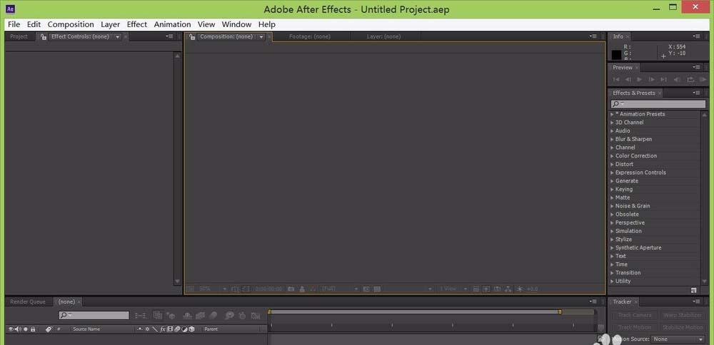 1、打開aftereffect這款軟件,進入aftereffects的操作界面,如圖所示: