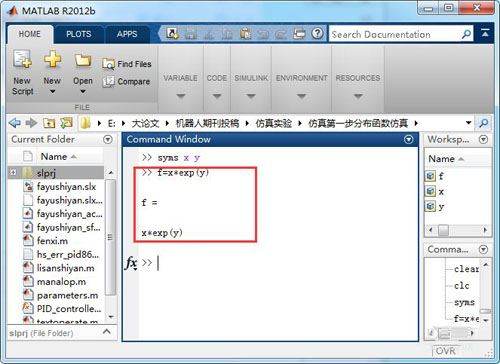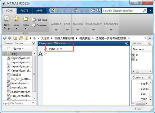 2、定義兩個符號變量分別為,x y;