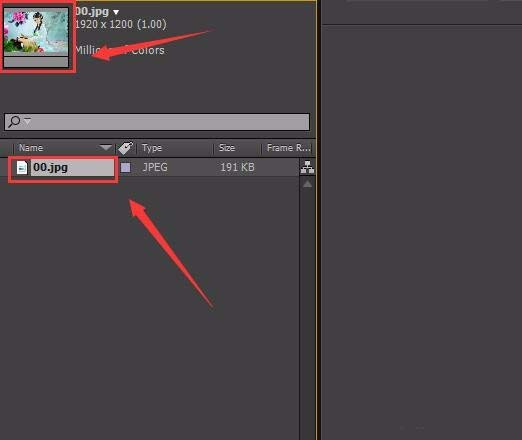 4、將該圖片拖拽到composition窗口,在圖片就顯示出來了,如圖所示: