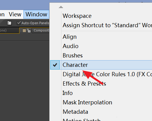 5、如果需要修改字體等,點擊【窗口】查看【文字】前是否有打勾