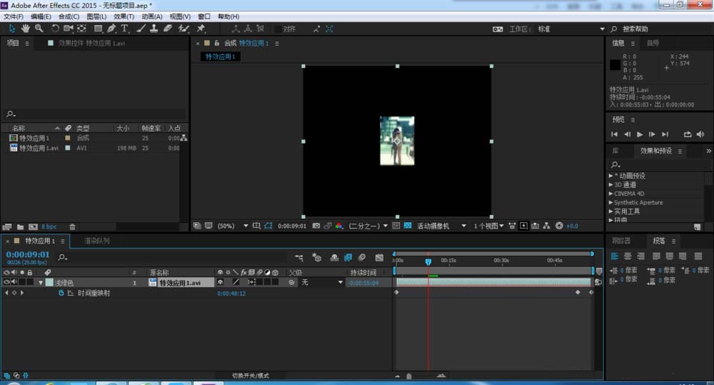 1、先打開AE導入一段素材,然后拉下到時間線窗口中。鼠標右鍵單擊時間線窗口中的素材,光標選中“時間”-“時間伸縮”。然后出現“時間伸縮面板”,設置“拉伸因數”。100%是正常的播放速度,如果你設置成200%那么素材播放速度就變為原來的二分之一,設置成50%素材播放速度就比原來的快了一倍。