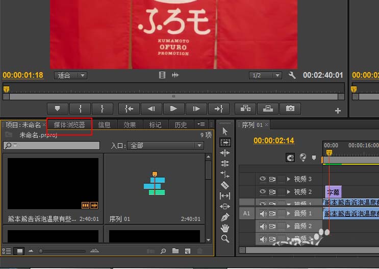 2、點擊媒體瀏覽器 項,打開你需要添加字幕的視頻文件夾,選中視頻導入 。
