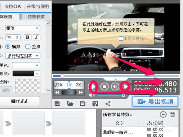 5、設(shè)置好后,將字幕拖至你要放的那個時間段即可,通過幀的調(diào)節(jié)起始時間,可以做到文字配對;