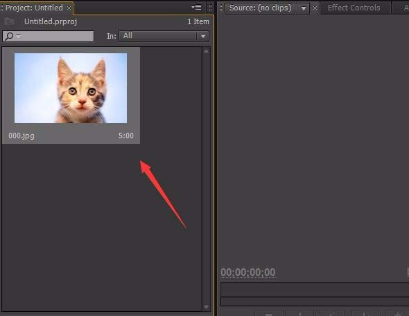 3、在該對話框內找到一張圖片,點擊打開,可以看到在project窗口里就出現(xiàn)了該圖片,如圖所示: