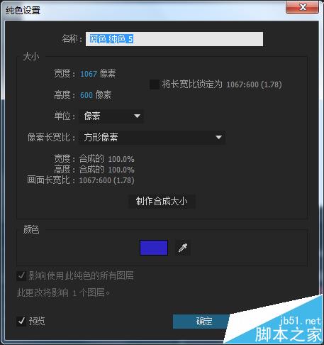 2、新建一純色圖層(ctrl+y),設置顏色為藍色
