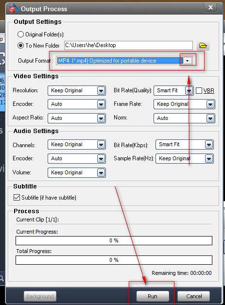 8、選擇保存后的視頻格式。點擊:Run按鈕。