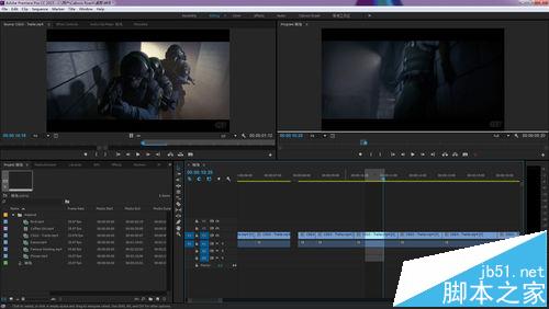 如果你剪輯的片段不知道位于素材的什么位置,那么F鍵將是你的救星,將時間指針按上下鍵指定到剪輯點,按F鍵就會在素材監視器窗口出現被剪輯的素材和出入點(按上下鍵切換)