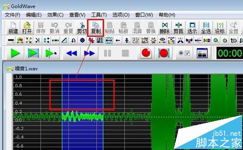 4、點擊工具欄中的“復制”按鈕,將樣本進行復制。這樣,剪貼板中也就有了噪音樣本。