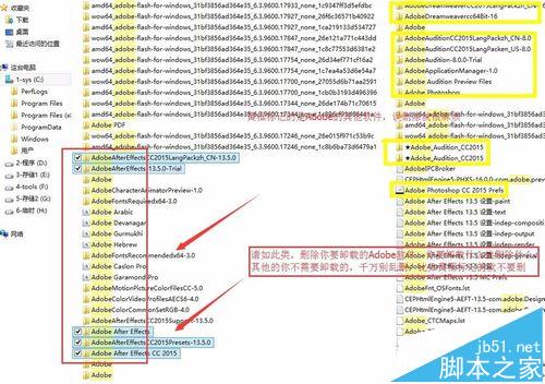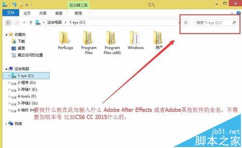 4、現(xiàn)在,打開C:盤 在右上角地址欄旁邊搜索欄輸入你要刪除的Adobe軟件的名稱,不需要加版本號,搜索完畢刪除這些文件夾,如圖,注意不要刪除其他Adobe軟件的文件夾類了,