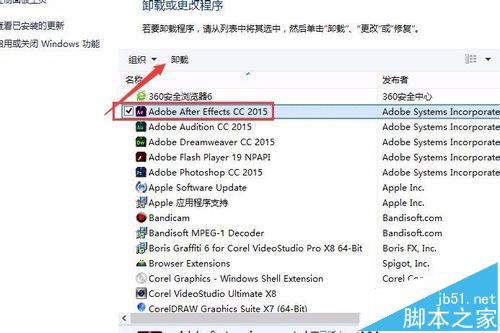 1、卸載舊版本,找到控制面板的 程序與功能點擊進(jìn)入,找到AE軟件點選后點擊上面卸載,這里以卸載報錯,或者點擊無反應(yīng)舉例說明,這里不需要下載這樣那樣的卸載軟件,我們就直接開始刪除,先重啟電腦,這是為了避免有之前運行過AE或者相關(guān)軟件造成后續(xù)刪除的一些小麻煩
