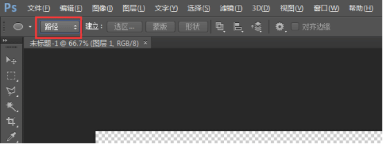 首先在ps中新建一個(gè)透明背景的文件,選擇橢圓工具,在選項(xiàng)欄選擇繪制路徑,然后在畫(huà)布中繪制一個(gè)圓形路徑;