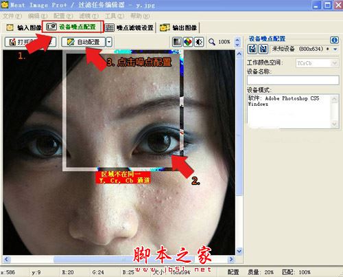 第三步,點擊設備噪點配置,然后在照片上拖選出一個框,再點擊自動配置(注意:拖選時要選中皮膚,以便自動配置)