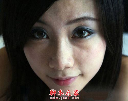 第一步,我們需要在PS里進行處理,對原圖的較大的豆豆和傷疤進行修復,可以用仿制圖案工具,和污點修復工具,看自己喜好,完成后得到下面的效果。